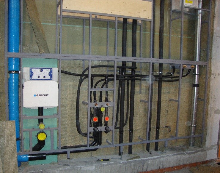 Wartungsfreundlich: Die Installation in der Vorwand ermöglicht einen einfachen Zugang zu den Sanitärleitungen für Wartungs- und Reparaturarbeiten.